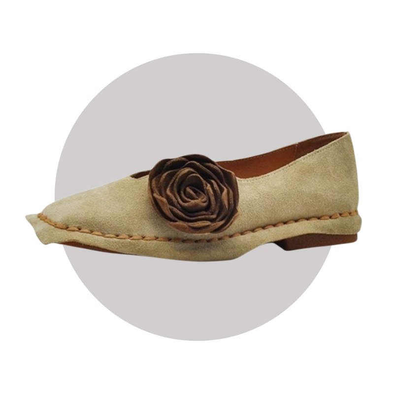 [تصميم فرنسي كلاسيكي] حذاء نسائي جلدي مصنوع يدويًا بمقدمة مربعة مزين بزهرة الكاميليا