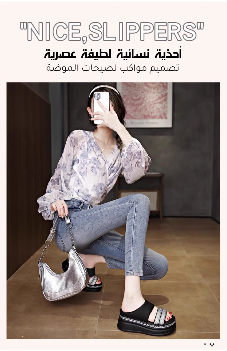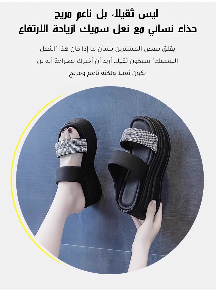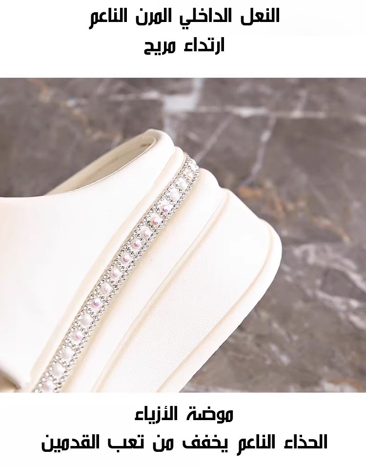 صندل عصري جميل مزين بأحجار راين مشرقة بكعب سميك