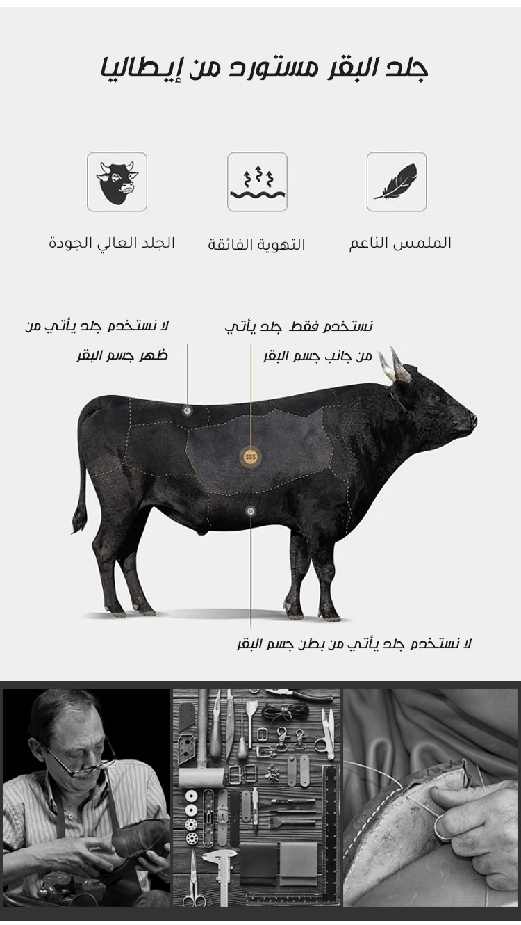 نمط المصمم، جلد بقري مستورد من الطبقة العليا، ناعم ومريح، يمكن المشي لـ50 ألف خطوة دون الشعور بالتعب.