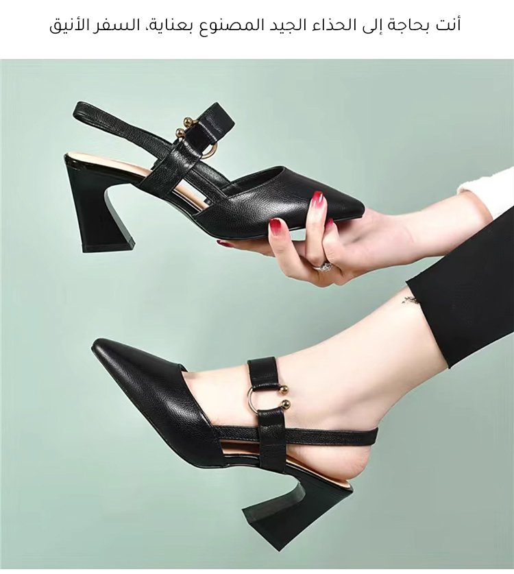 صندل عالي الكعب أنيق بتصميم مجوف من الجلد الطبيعي